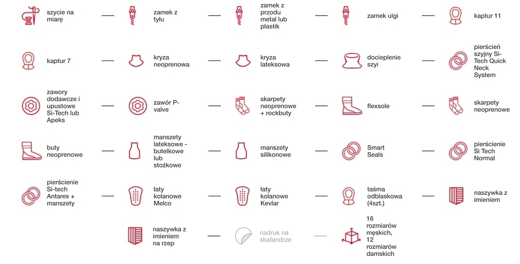 - kryza lateksowa ocieplona kołnierzem z 3 mm Neoprenu,